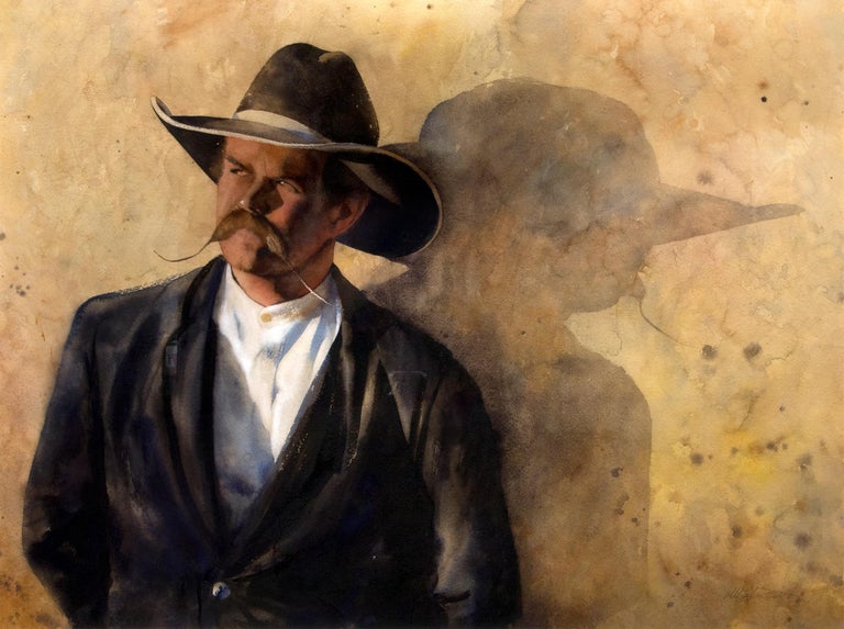 William Matthews Cowboy With Hat And Moustache Framed Watercolor Western Portrait Painting At 1stdibs